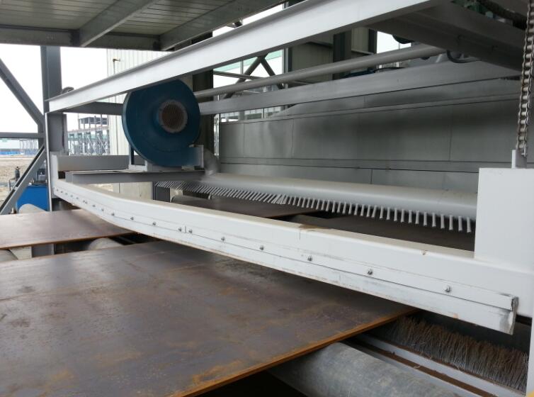 常規鋼板預處理線拋丸清理機包含:鋼板預處理線、型材拋丸機、噴漆烘干設備等幾部分組成,采用輥道輸送,根據鋼板寬幅定制拋丸器排布,其中我公司在拋丸設備的開發過程中總結了國內國家設備用戶使用情況,針對鋼丸的回收部分,特別加裝刮板及滾掃,鋼丸回收率高,損耗低。